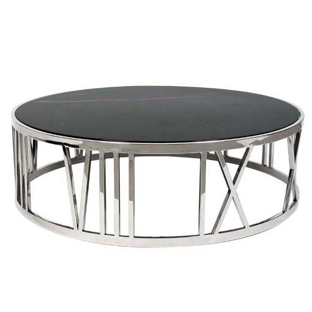 Мебель/Мебель для дома/Столики/Журнальные столики / Eichholtz / Журнальный столикЖурнальный столик Coffee Table Roman Figures на основании из нержавеющей стали. Столешница из мрамора черного цвета.